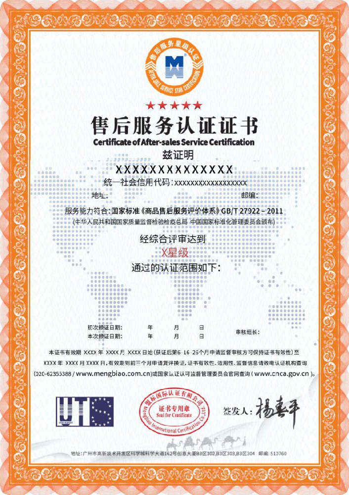 GB/T27922商品售后服务评价体系认证是指对企业的服务体系、、商品服务、、、、顾客服务三大方面进行评价。。。。售后服务认证是服务认证,,与管理体系认证不是一个类别,,它使用的GB/T27922标准是一个评价性质的标准,,,关键词是“评价体系”,,,认证目的是评出优秀。。。认证的结果是证明企业按照标准实施了服务,,,,并达到了某一个高度(星级)。。